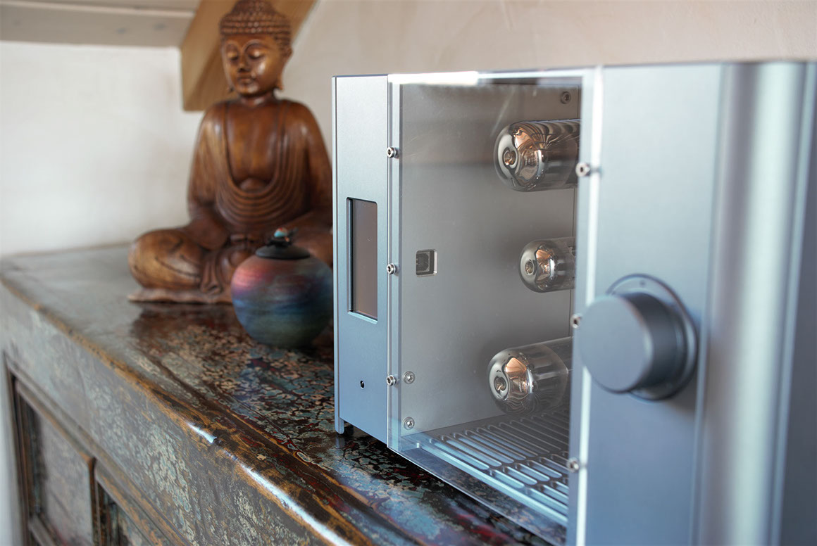 For tube enthusiasts, the Arcus amplifier adds the ability to support signal amplification tubes using either 6.3V or 12.6V filaments. No manual adjustment is necessary and the correct filament voltage will be applied automatically based on the inserted tube.